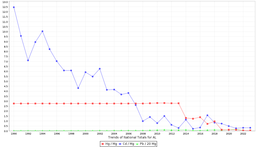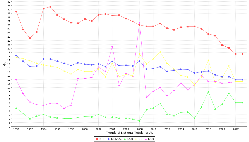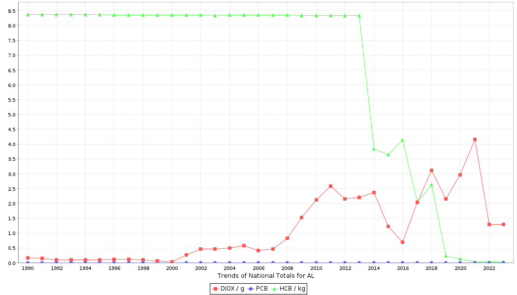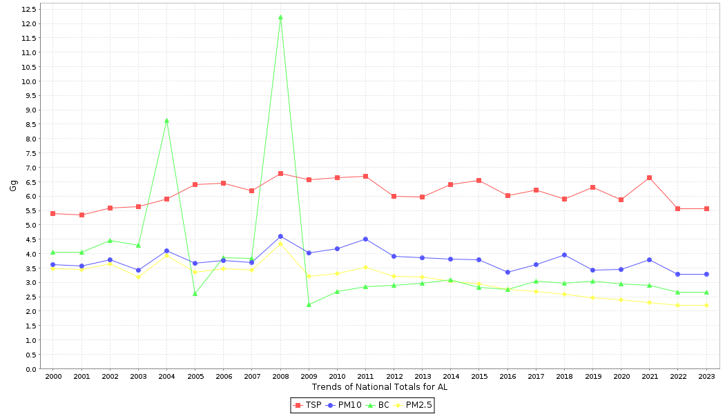 Party: AL Submission year: 2025Main PollutantsParticulate MatterHeavy MetalsPersistent Organic Pollutants