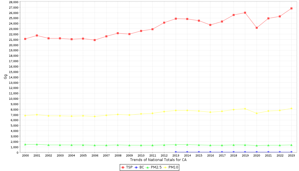 Party: CA Submission year: 2025Main PollutantsParticulate MatterHeavy MetalsPersistent Organic Pollutants