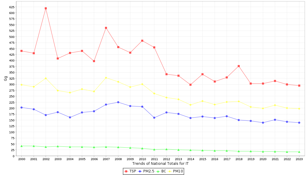 Party: IT Submission year: 2025Main PollutantsParticulate MatterHeavy MetalsPersistent Organic Pollutants