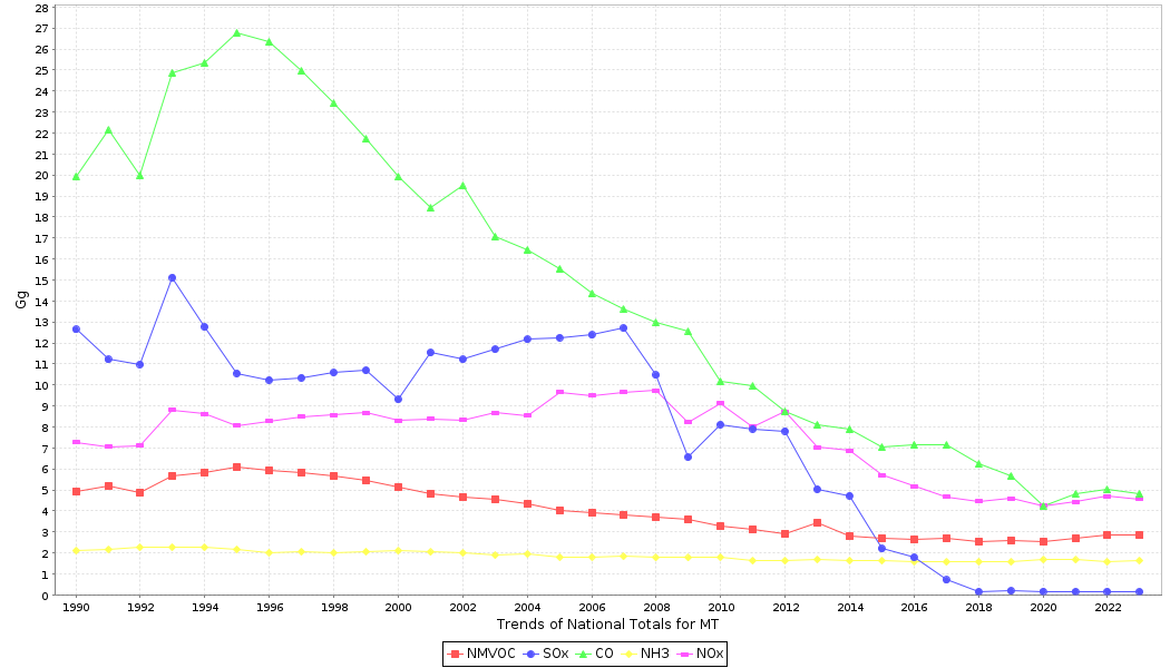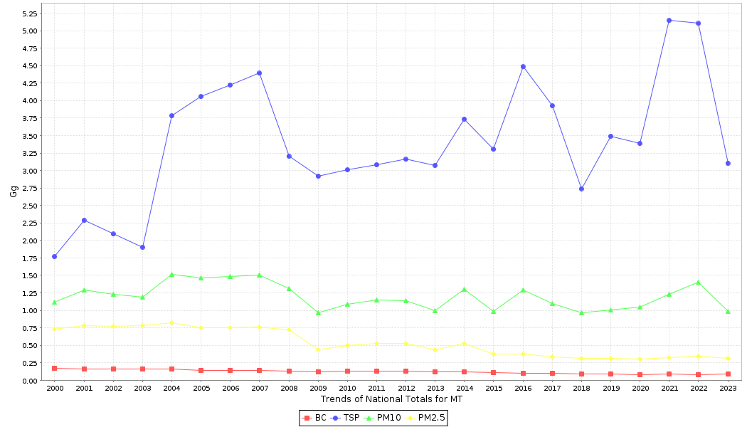 Party: MT Submission year: 2025Main PollutantsParticulate MatterHeavy MetalsPersistent Organic Pollutants